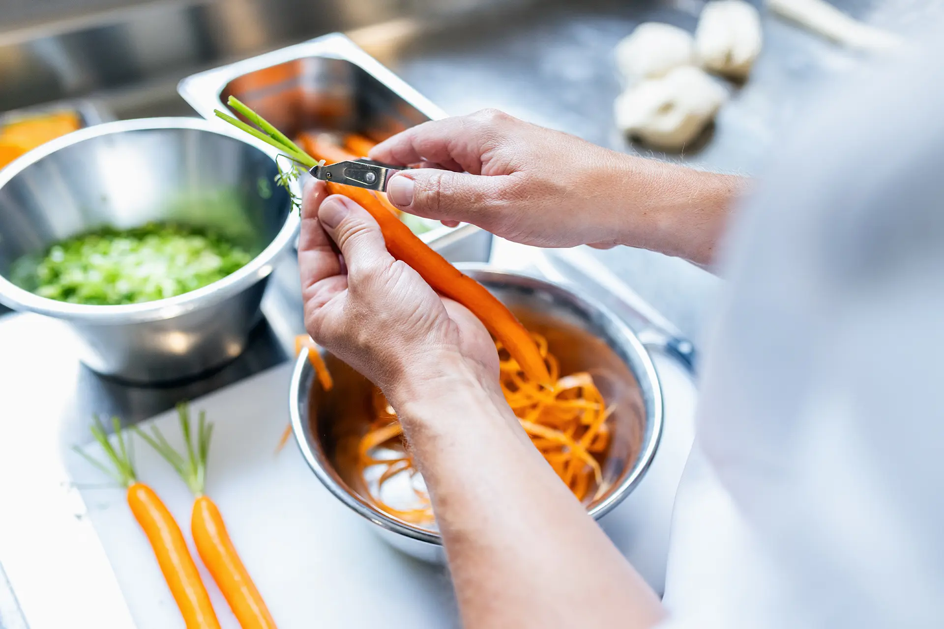 Mit Reportagefotografie direkt in der Küche gelang es, die Abläufe und die Arbeitsatmosphäre bei Illersenio authentisch einzufangen.